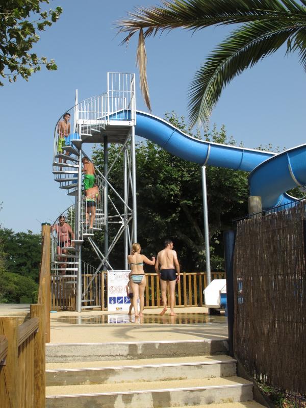 Zwischen dem Meer und den Bergen gelegen,bietet der Campingplatz eine idyllische Umgebung,einen herrlichen Wasserpark mit einem großen,von majestätischen Palmen gesäumten Freibad,einem beheizten Schwimmbad und einer Wasserrutsche,alles begrünt.