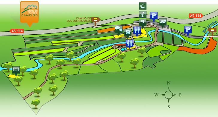 Camping Picos de Europa befindet sich am Fluss Güeña (Nebenfluss des Rio Sella) und ist umgeben von schönen Wäldern und den Ausläufern der nördlichen Hänge des Gebirgsmassivs der Picos de Europa. Es ist ein idealer Ausgangspunkt für Ausflüge zu in wunderbaren Orten wie den Covadonga Seen. Profitieren Sie von der erstklassigen Lage in der Nähe der wichtigsten Sehenswürdigkeiten des Nationalparks Picos de Europa. Wenn Sie ans Meer wollen,finden Sie die Küste von Llanes nur 20 km entfernt,mit ihren schönen Stränden wie Torimbia.