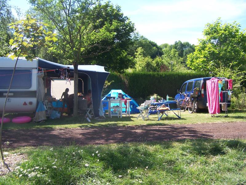 Sehen Sie! Hier gibt es Platz: Große Stellplätze,schattige oder sonnige,große Grünflächen zum Spielen oder Träumen,ein Fluss zum Angeln oder Waten,ein Park gepflanzt,Gemüseplätze und blumen.