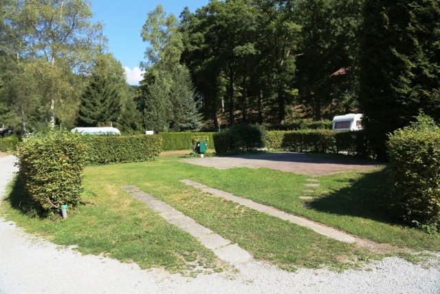 Aufenthalt vom 21. bis 28. September. Ein Campingplatz in einem schmalen Tal mitten im Wald und umgeben von bewaldeten Bergrücken. Im Sommer ist dieser Platz sicher sehr schön, im Frühjahr und Herbst kommt aber die Sonne in der Platzmitte sehr spät,ca. ab 11:30 Uhr und geht schon um ca. 17:00 unter( siehe oben Aufenthaltszeit). Trotzdem ist dieser Platz zu jeder Jahreszeit ideal für Besichtigungen und Wanderungen sowie Radtouren. Leider gibt es auf der einen Seite eine Durchzugsstrasse (am Wochenende durch Motorradfahrer sehr laut), auf der anderen eine schwach frequentierte Bahnlinie, deren vobeifahrenden Züge sehr leise sind. Abends kein Bahnverkehr und der Strassenverkehr lässt nach, sodass man gut schlafen kann. Sehr freundliches und hilfsbereites Betreiberehepaar. Die Stellplätze sind sehr sehr gross, Frisch- und Abwasser sowie Stromanschluss befinden sich direkt am Stellplatz. Die Stellplätze sind mittels Hecken abgeteilt. Die sanitären Anlagen waren immer sauber, sind aber etwas veraltet und einfach. Die Duschräume sind ausreichend gross. Zu bemängeln wäre: keine Einstellmöglichkeiten der Wasserwärme und der Menge, kein Verstellen des Duschkopfes und die Dusche schaltet sich erst nach ca. 5 min. ab. Auch die Wasserabflüsse sind so gestaltet, dass das Wasser von den Nebenduschen herüberschwemmt. Hervorzuheben ist, dass der Preis von € 18.-inkl. Strom bis 4 Kwh pro Tag in der Vor- und Nachsaison sehr günstig ist. Dazu kommt noch, dass ADAC Card Besitzer bei einem Aufenthalt von 7 Tagen nur 6 Tage bezahlen. Auch das Internet ist sehr günstig, 7 Tage € 10.- und es funktionierte auf unserem Stellplatz sehr gut. Brötchendienst gibt es hier auch. Erwähnen möchte ich auch noch, dass die Zufahrt zum Campingplatz auf einer Länge von ca. 1,5 km nur einspurig ist. Es gibt aber einige Ausweichen und wenn man nach Mittag anreist, dürfte dies kein Problem darstellen, da die abreisenden Camper mit dem Gespann ja schon alle weg sind. Von unserer Sicht aus bekommt dieser Platz 3,3 Punkte von 5.