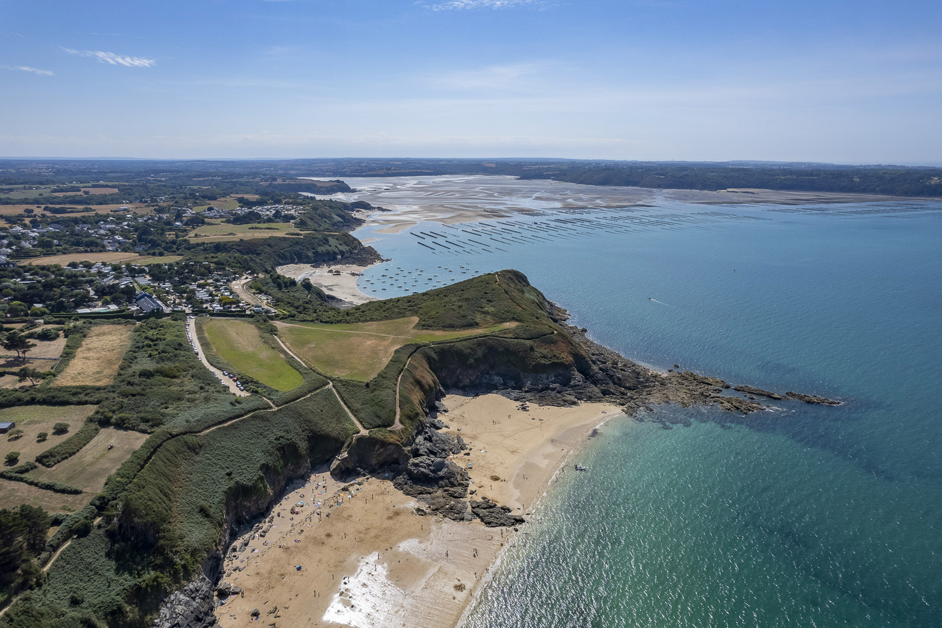 Direkter Zugang zu zwei Sandstränden. Der Küstenweg (GR34) beginnt direkt am Campingplatz.