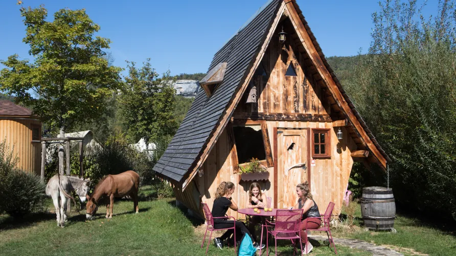 Der Domaine La Roche d'Ully **** befindet sich in den Gorges de la Loue in Franche-Comté,die am Rande der historischen Stadt Ornans in den Bergen des Jura gelegen ist. Wir freuen uns,Sie in unserer ökologisch verantwortlichen Einrichtung willkommen zu heißen,in der Sie finden: Standing Cottages wie die Granvelle Prestige,Lodges,die Tradition und Modernität miteinander verbinden,atypische Chalets wie Dachböden auf Pilotis,die Feenhütte sowie sehr komfortable Campingplätze (+120m2,Strom,Wasser und Kanalisation). Der Wasserpark Nautiloue (neben dem Campingplatz) mit seinen 2 Außenpools,Pentagisse,entspannter Raum (Sauna,Hammam,Jacuzzi) wird Ihnen Spaß und gute Laune während Ihres Aufenthalts bringen.