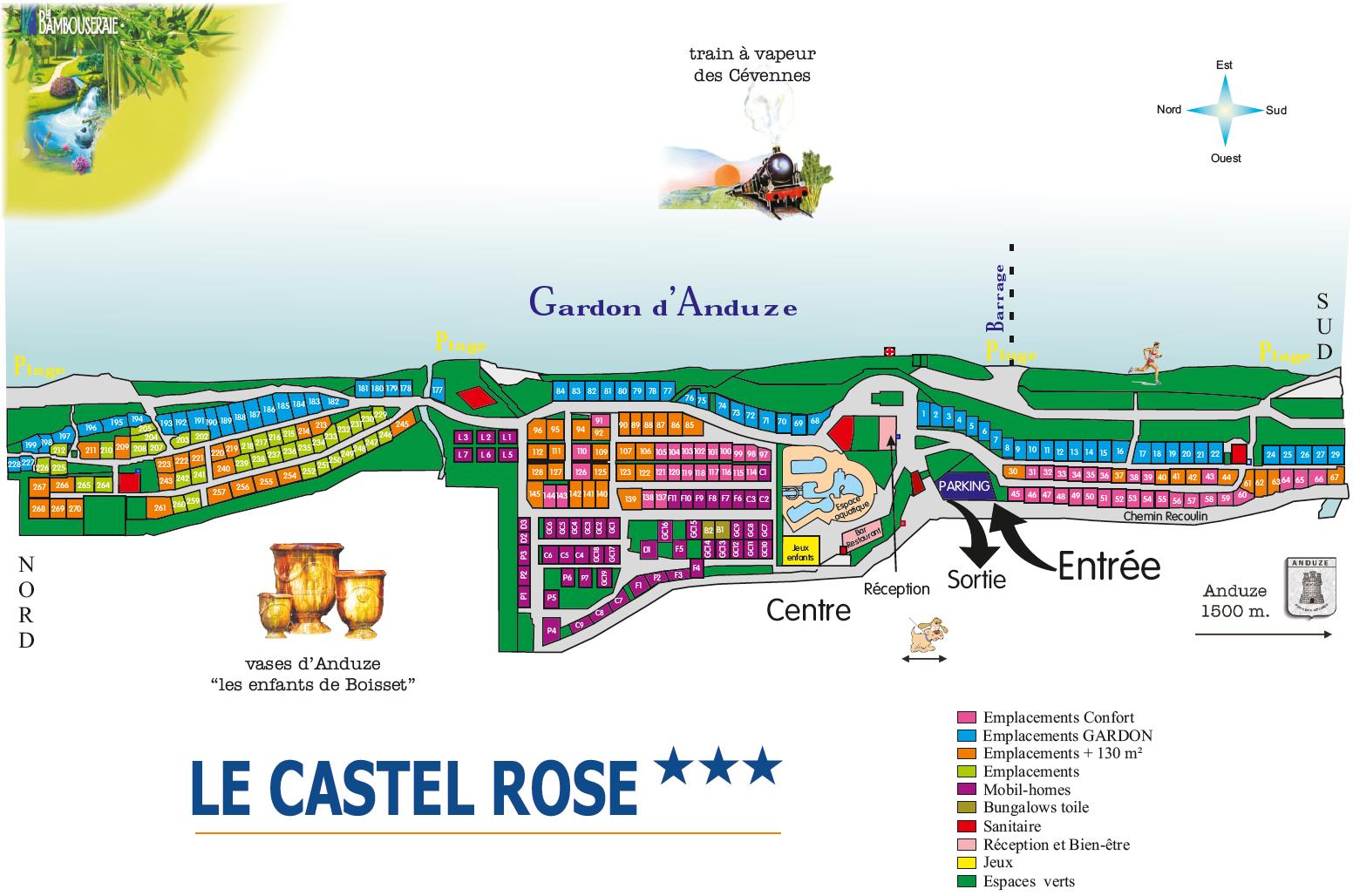 Der Campingplatz LE CASTEL ROSE ist geräumig und mit Bäumen bewachsen. Er verläuft über einen Kilometer entlang des Flusses Gardon gegenüber der berühmten Bambusplantage. Le Castel Rose ist ein ruhiger Vier-Sterne-Campingplatz mit Privatstränden am Flussufer und einem 1800 m² großen Wasserpark... Profitieren Sie auch von seinem Bar-Restaurant sowie einer großen Auswahl an Aktivitäten für alle Altersgruppen. Der Campingplatz Le Castel Rose ist ein beliebtes Reiseziel für einen Familienurlaub,einen Ausflug zu zweit oder ein Wiedersehen mit Freunden im Departement Gard.