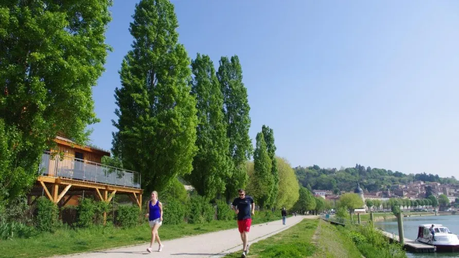 Entdecken Sie den 3-Sterne-Campingplatz am Ufer der Saône,nur 30 km von Lyon entfernt und genießen Sie einen Aufenthalt in der Natur. Wir empfangen Sie von 1. März bis 30. September auf unseren Stellplätzen (Wohnwägen,Zelte oder Wohnmobile) oder Mietunterkünften (Holz-Chalets auf Stelzen). Profitieren Sie kostenlos (außer sonntags und an Feiertagen) von unserem Wasserpark mit Wasserfällen,. Nehmen Sie sich die Zeit am Treidelpfad entlangzuflanieren und die Schätze der Region und ihrer Gastronomie kennenzulernen.