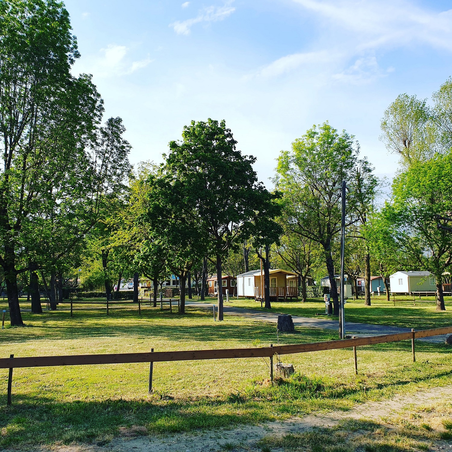 Der Campingplatz bietet 21 Chalets und 6 Mobilheime,4 Stellplätze mit Küche und eigenem Bad sowie 62 flache und schattige Stellplätze für Zelte,Wohnwagen und Wohnmobile.