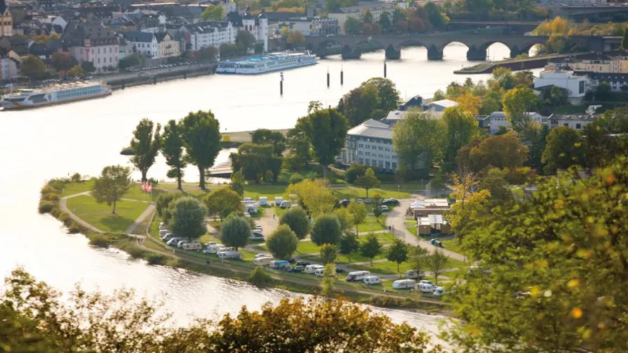Direkt gegenüber des Deutschen Eck und der Altstadt Koblenz befindet sich der neue KNAUS Campingpark Rhein-Mosel/Koblenz. Dort,wo Rhein und Mosel sich vereinen. Der Campingpark,welcher bereits seit 60 Jahren unter dem Namen _Campingplatz Rhein-Mosel_ existiert,bietet knapp 200 Stellplätze mit fantastischem Blick auf das Deutsche Eck,die Koblenzer Altstadt sowie auf die Festung Ehrenbreitenstein mit der anlässlich der Bundesgartenschau installierten Seilbahn.