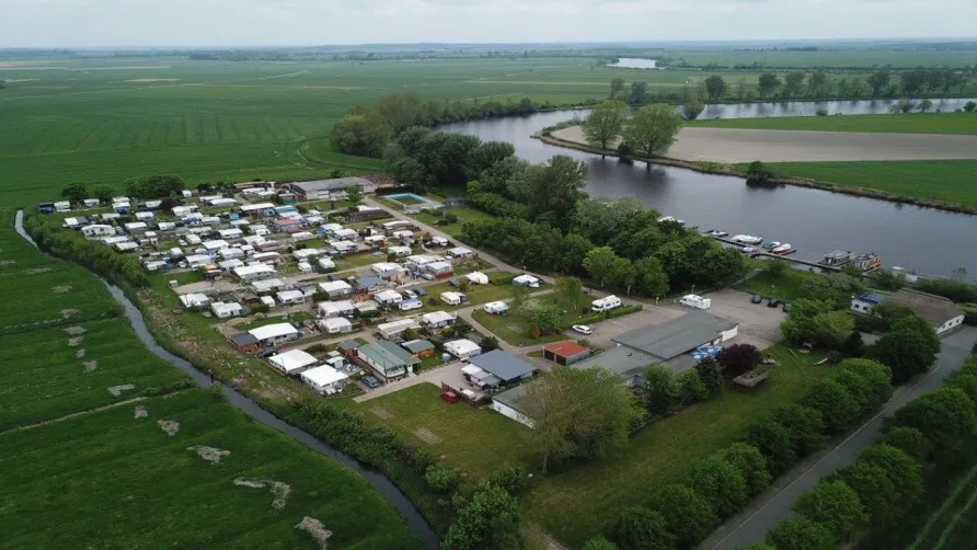 Unser Campingplatz liegt direkt am Ufer der Eider in Delve im Kreis Dithmarschen. Büsum und die Nordsee sind nur rund 30 km von hier entfernt. Friedrichstadt,wegen seiner Bauten der niederländischen Backsteinrenaissance und seiner Grachten auch als _Holländerstadt_ bekannt,ist nur etwa 20 km entfernt.